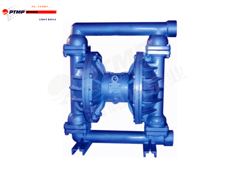 一,連接壓縮空氣后,氣閥控制壓縮空氣推動膜片向友移動,同時膜片會擠壓右膜腔室中的介質從而將介質排除泵腔。膜片不僅起輸送介質的作用,同時在泵腔中起隔離壓縮空氣和介質。當一個膜片被壓縮空氣推向遠離中間體時,與此同時通過連桿鏈接的另外一個膜片移向中間體時,與此同時通過連桿鏈接的另外一個膜片移向中間體,其中處于高壓的連桿其作用是連接位于兩個膜腔室中的膜片。當膜片2移向中間體時,膜片后面的高壓空氣通過閥門的換向通過消音器被迫排放到外界。當膜片2移向中間氣閥時,泵入口產生真空并通過大氣壓力將介質壓入泵的進口中。此時蹦的進口閥球會被抬高而離開閥座,保證介質很輕松的通過進口管路而充入泵腔中。